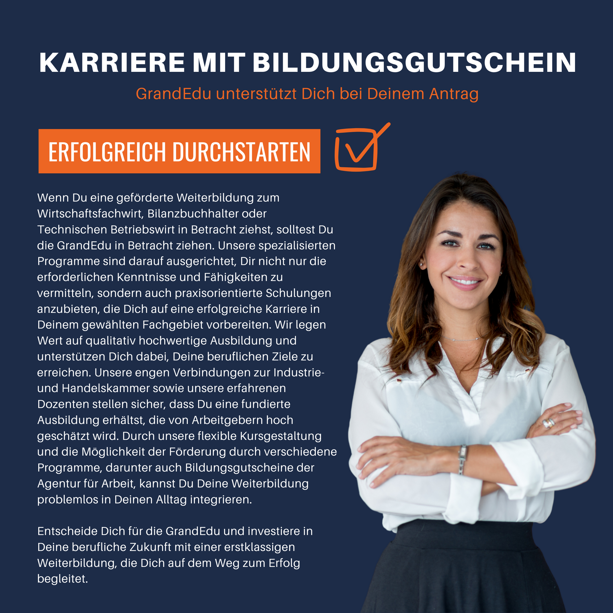 Nach erfolgreichem Abschluss deiner Aufstiegsfortbildung bei GrandEdu bist Du optimal vorbereitet für Deinen neuen beruflichen Weg.